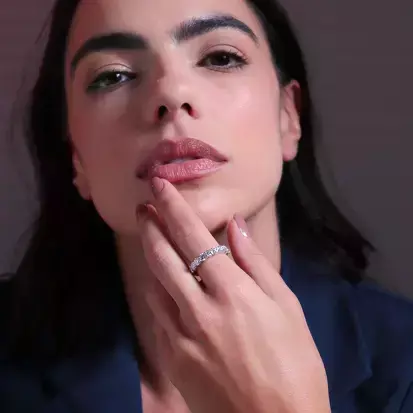 ANEL ALIANÇA CRAVEJADO POR INTEIRO MOISSANITE EM PRATA COM BANHO