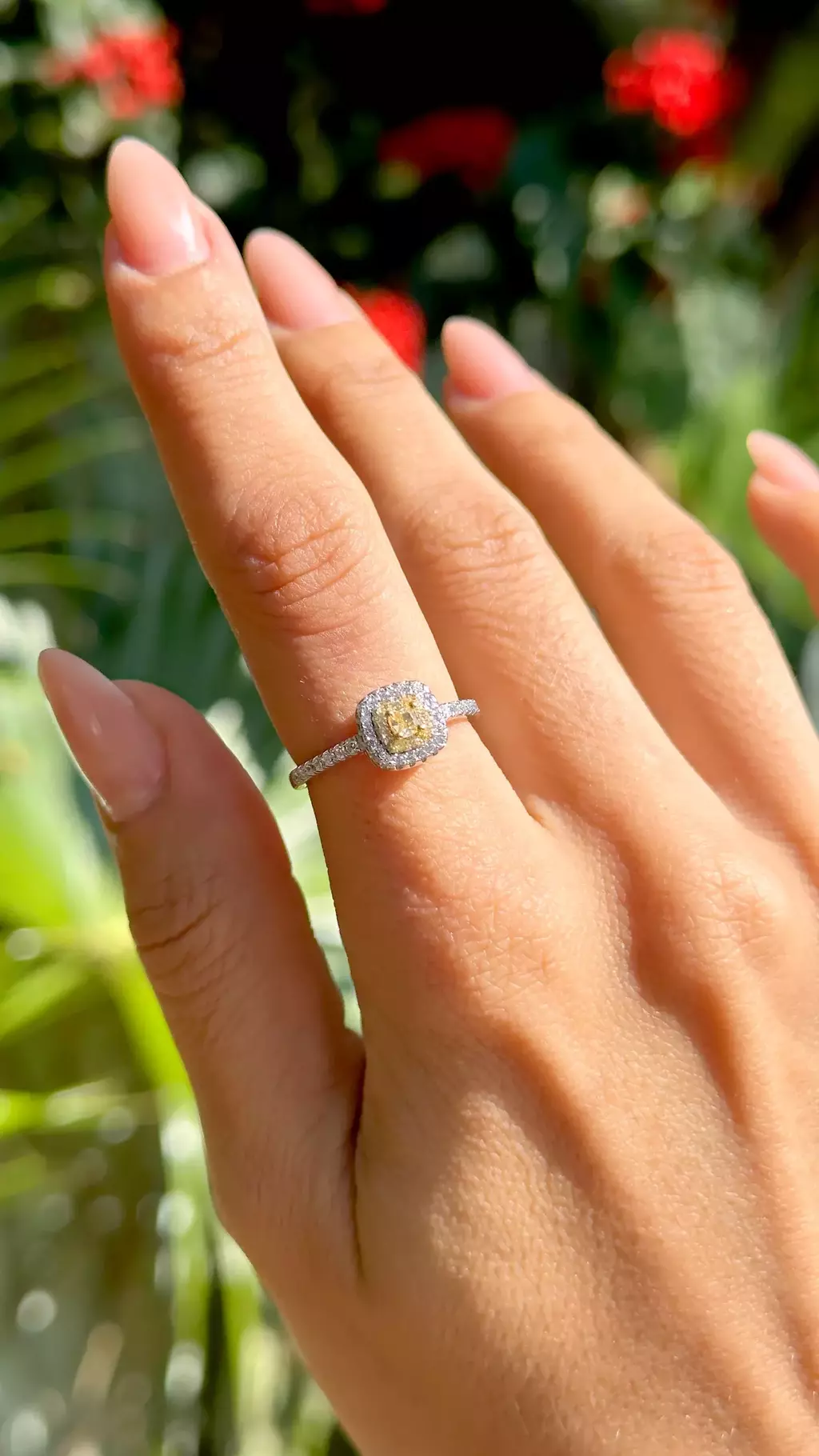 ANEL ZIRCONIA FANCY YELLOW ZIRCONIA CÚBICA BRANCA QUADRADINHO PRATA 925