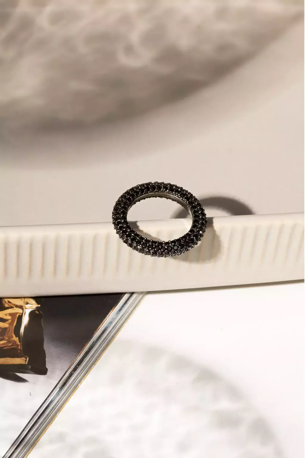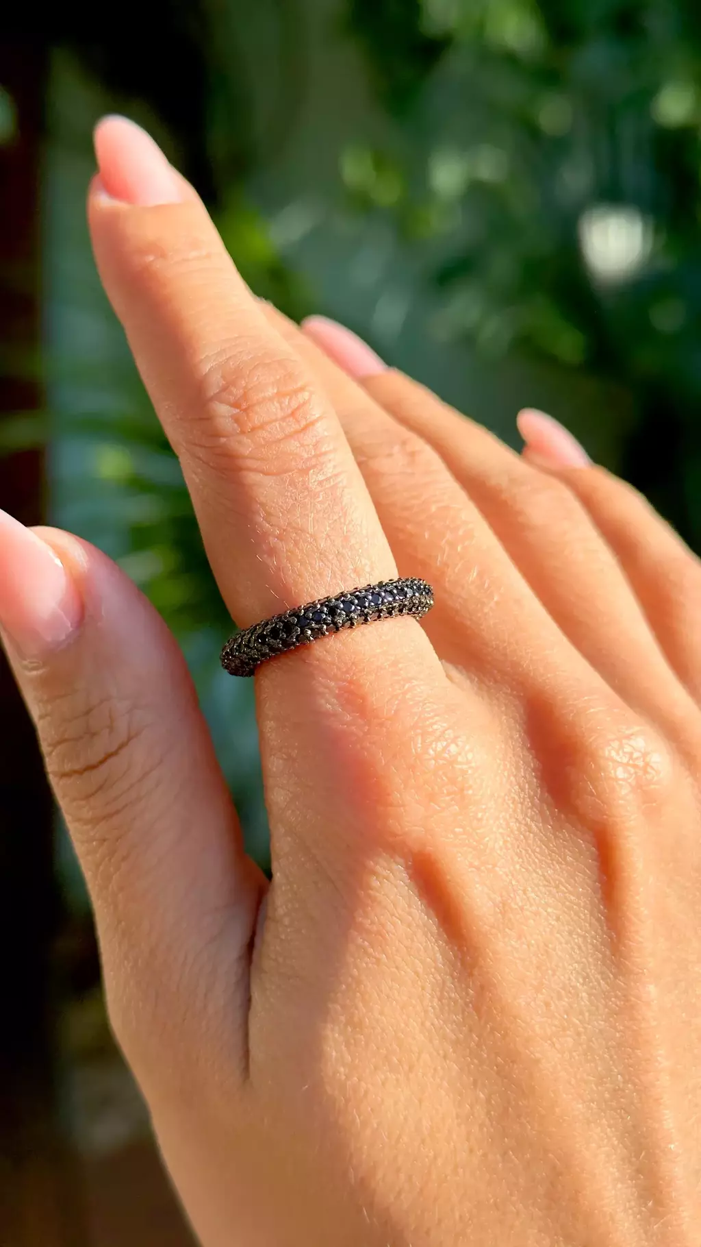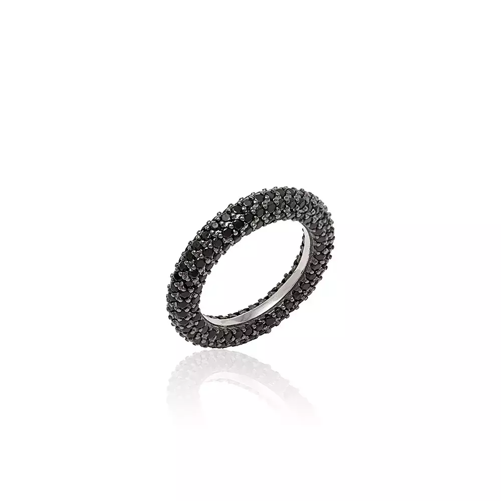 ANEL ZIRCONIA NEGRA 5 LINHAS TODA CRAVEJADA PRATA 925