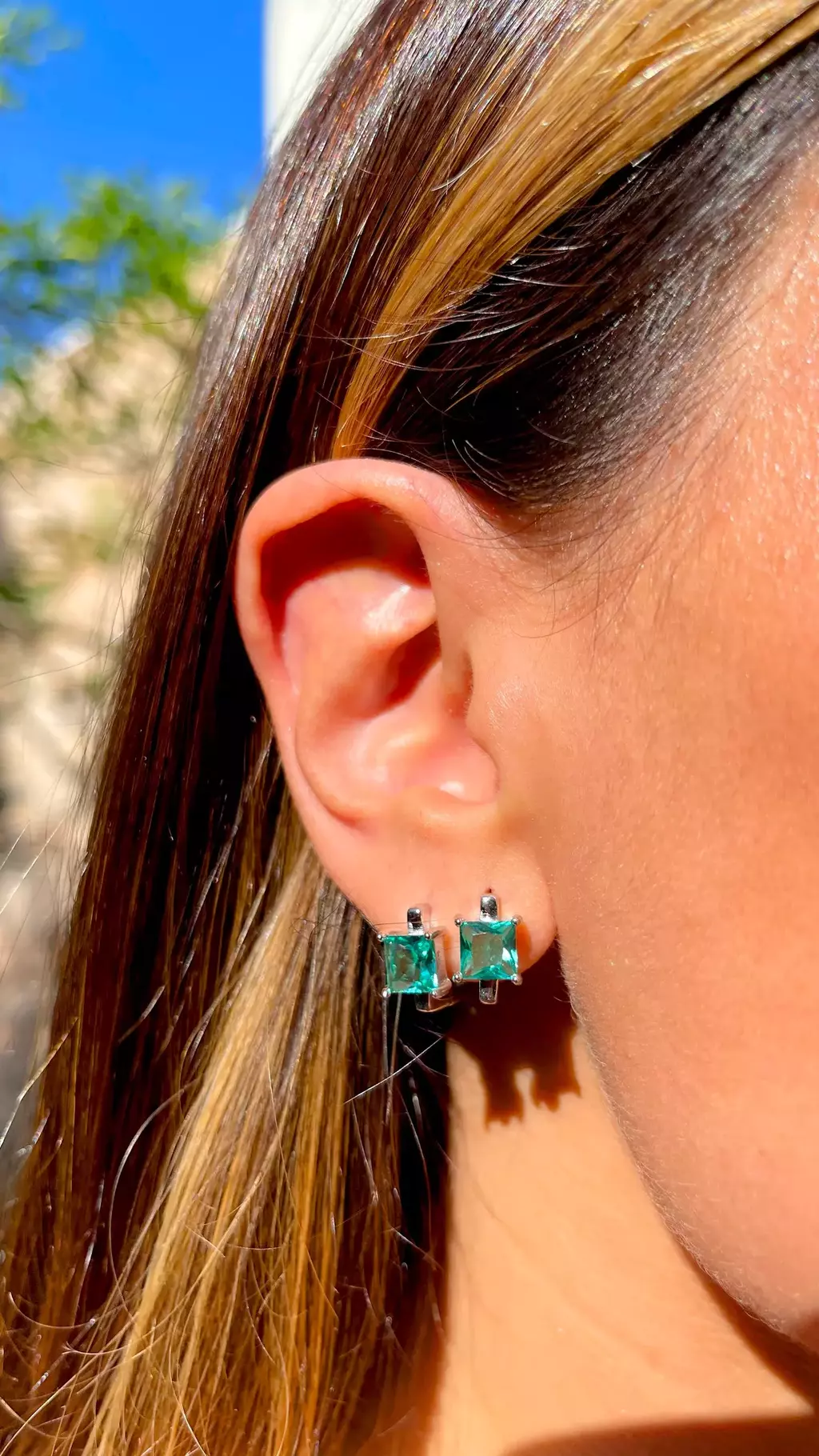 BRINCO CRISTAL PARAIBA ARGOLA QUADRADA
