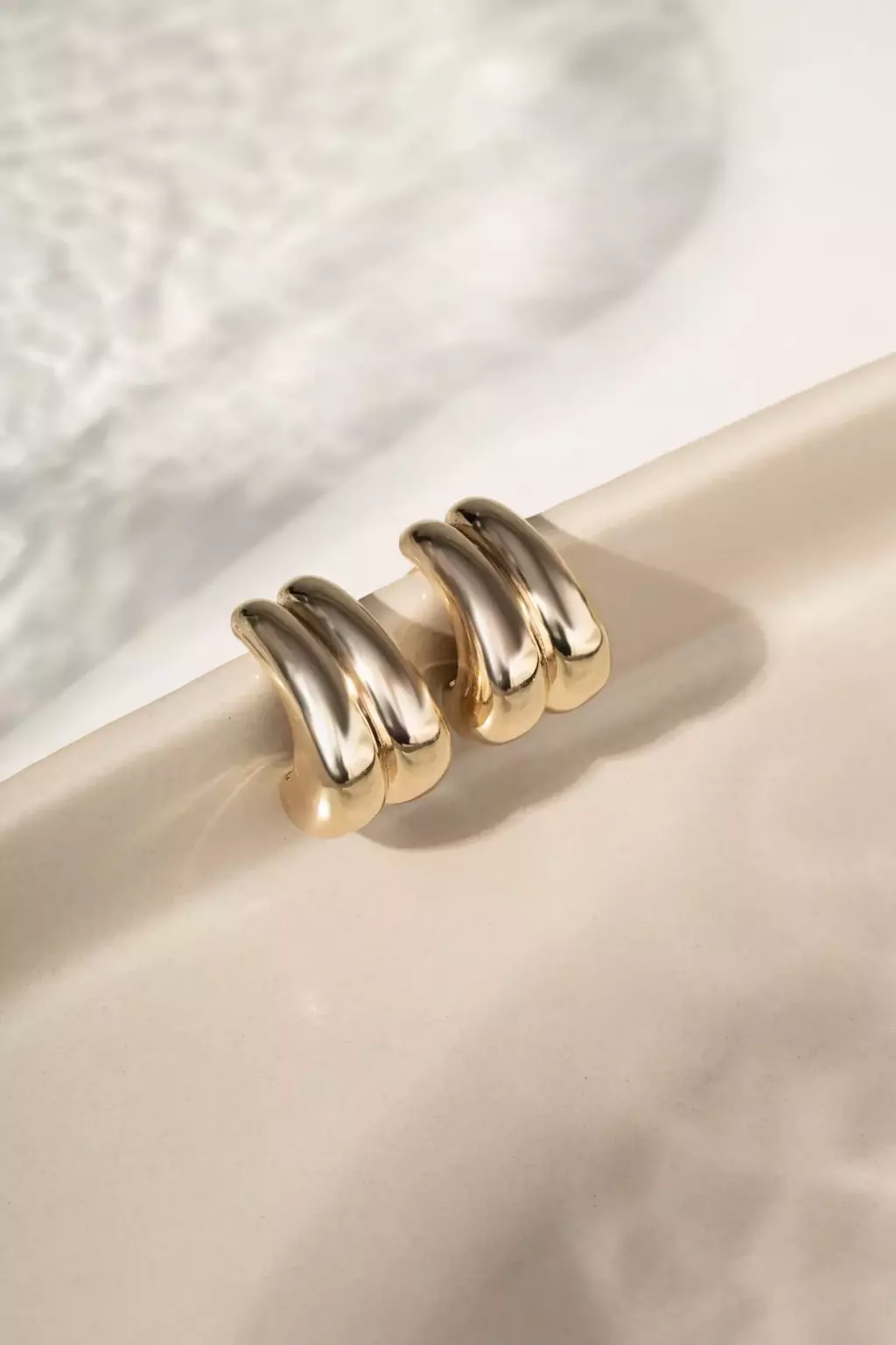 BRINCO FOLHEADO LISO DUPLO DOURADO