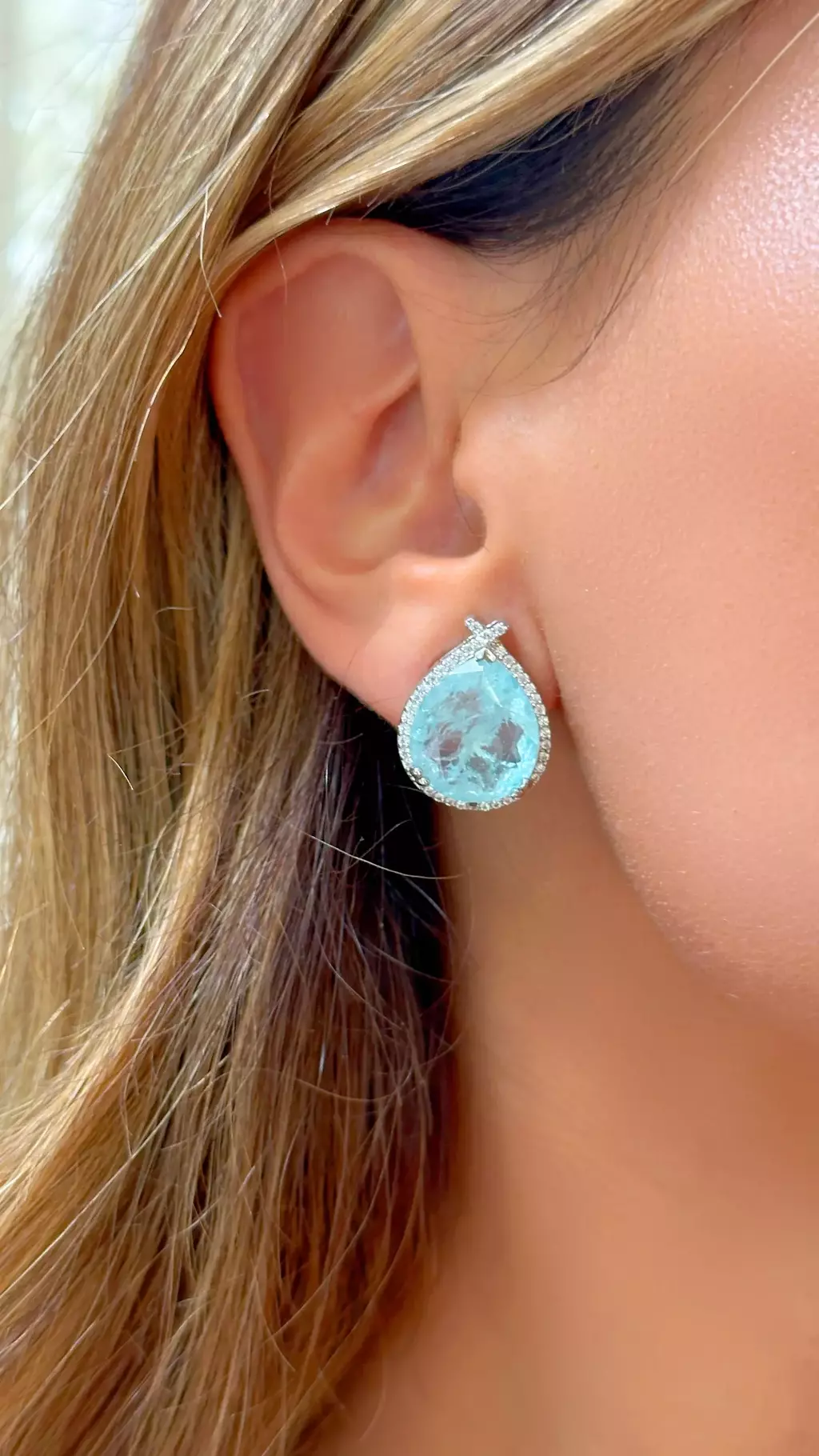 BRINCO FUSION TURMALINA LIGHT ZIRCONIA BRANCA GOTA COM CRAVAÇÃO DE GARRA P 14X10