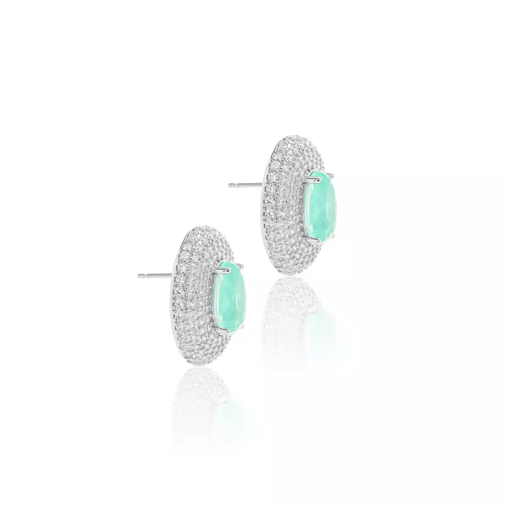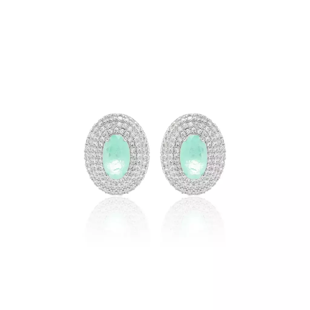 BRINCO FUSION TURMALINA ZIRCONIA BRANCA OVALÃO BORDADO