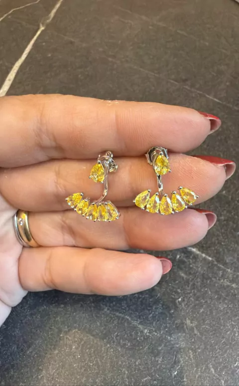 BRINCO PRATA NAVETE E ZIRCONIA PENDENTE GOTA
