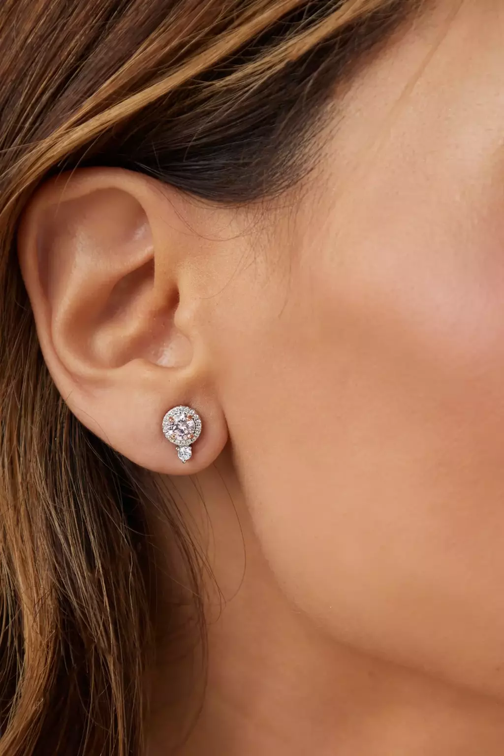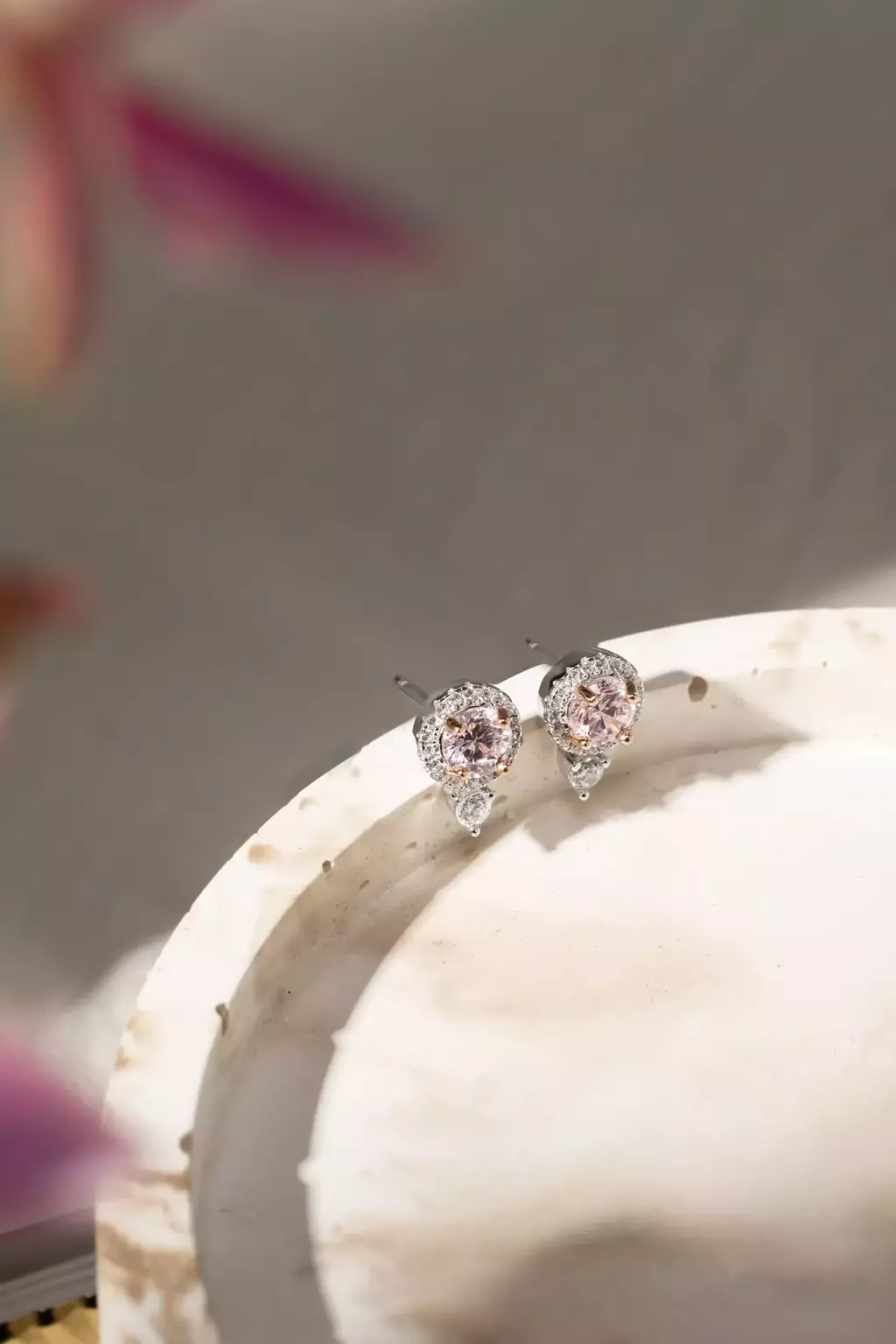 BRINCO ZIRCONIA DIAMOND PINK ZIRCONIA BRANCA REDONDINHO