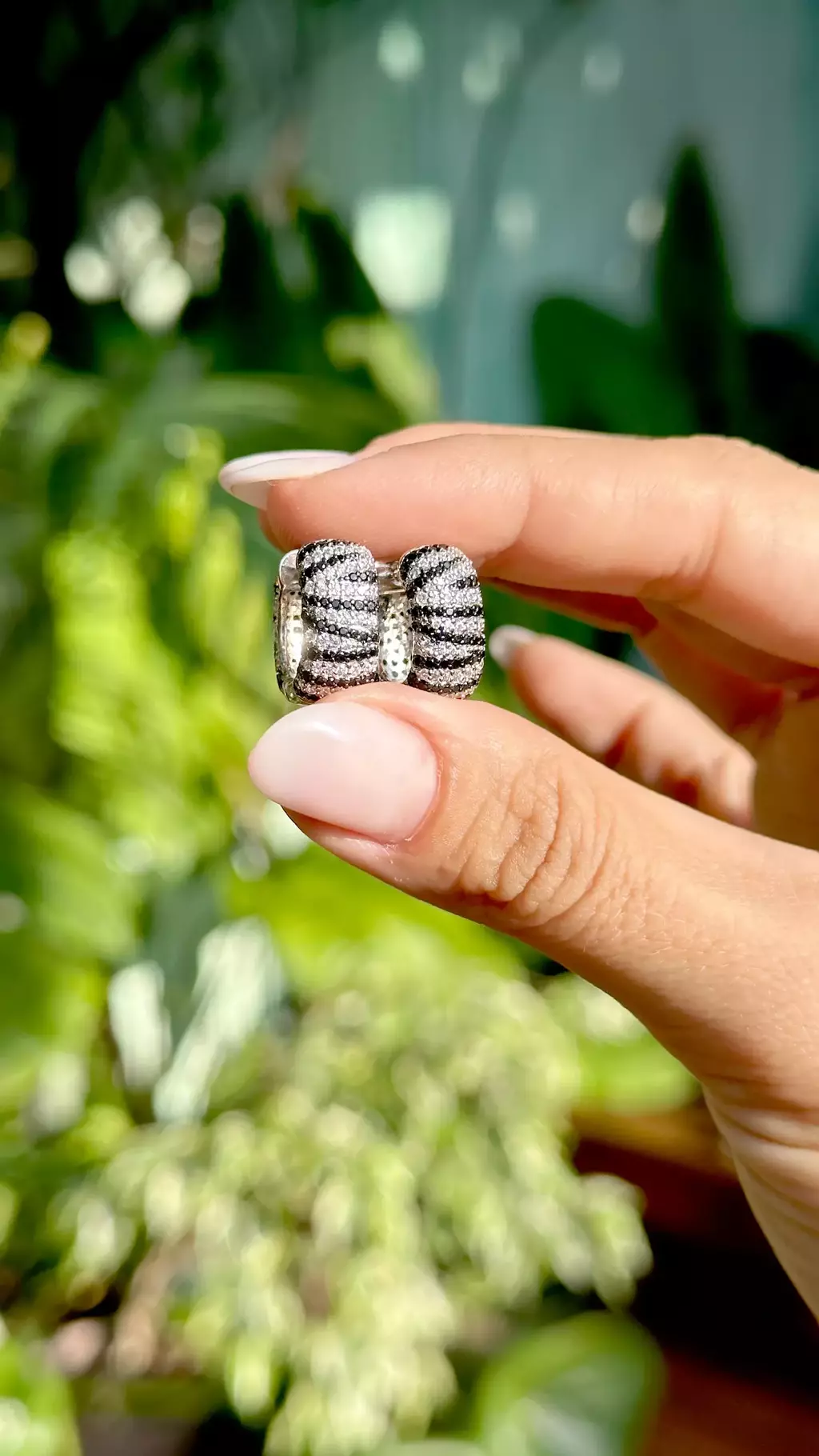 BRINCO ZIRCONIA NEGRA ZIRCONIA BRANCA ARGOLA ANIMAL PRINT
