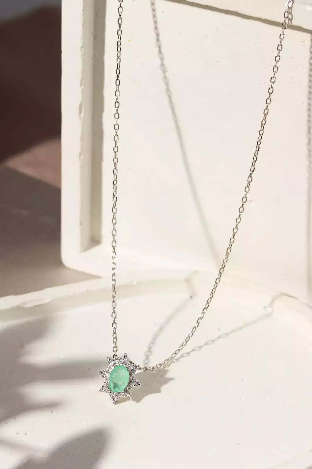 COLAR FUSION ESMERALDA COLOMBIANA ZIRCONIA BRANCA OVALZINHO