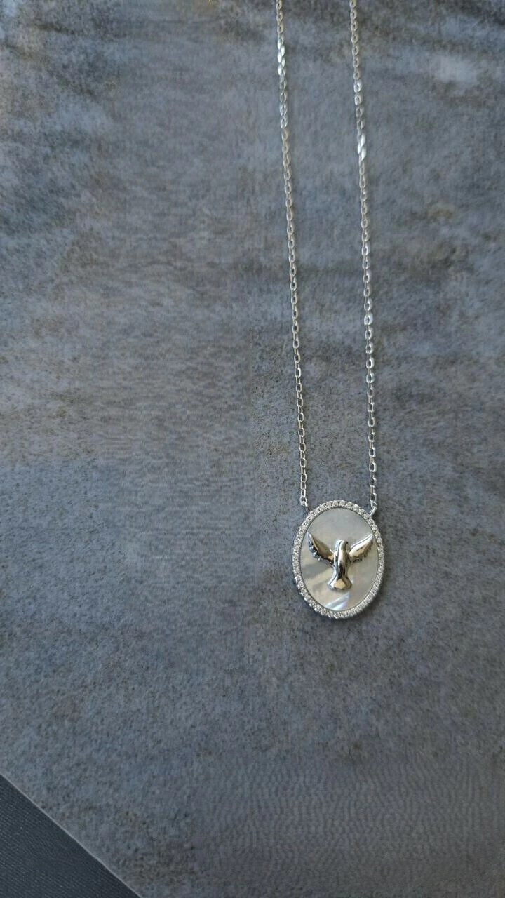 COLAR GARGANTILHA DIVINO ESPIRITO SANTO COM MADRE E ZIRCS.40+5CM PRATA 925