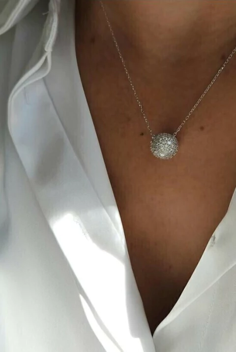 COLAR PATA 1/2 BOLA WHITE/PINK CRAVEJADA ZIRCS.38+5CM 13MM