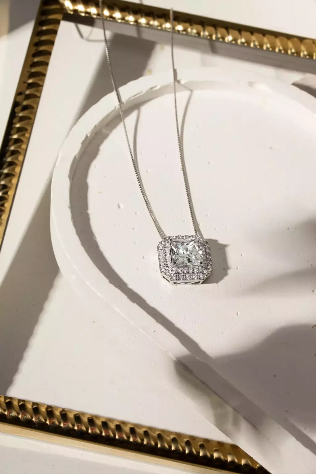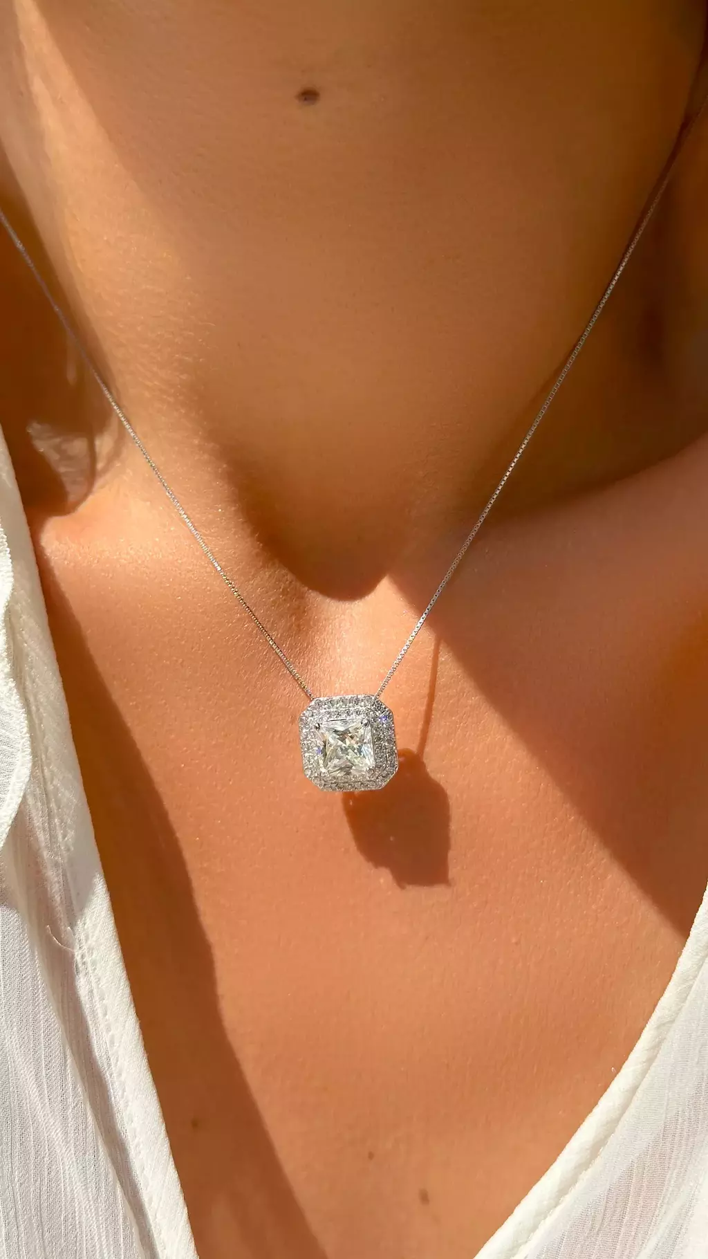 COLAR ZIRCONIA ICE CUT LIGHT FANCY YELLOW ZIRCONIA BRANCA QUADRADO CRAVEJADO