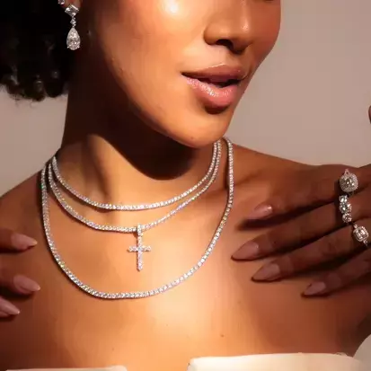 PINGENTE CRUCIFIXO MOISSANITE EM PRATA 925 COM BANHO DE RODIO
