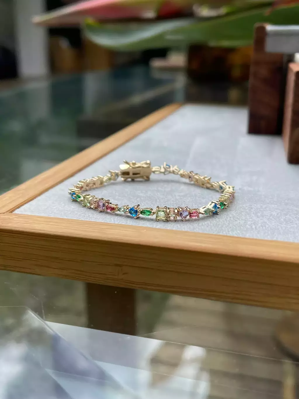 PULSEIRA CRISTAL SAFIRA CRISTAL ESMERALDA CRISTAL AMETISTA VERDE FORMAS 16CM