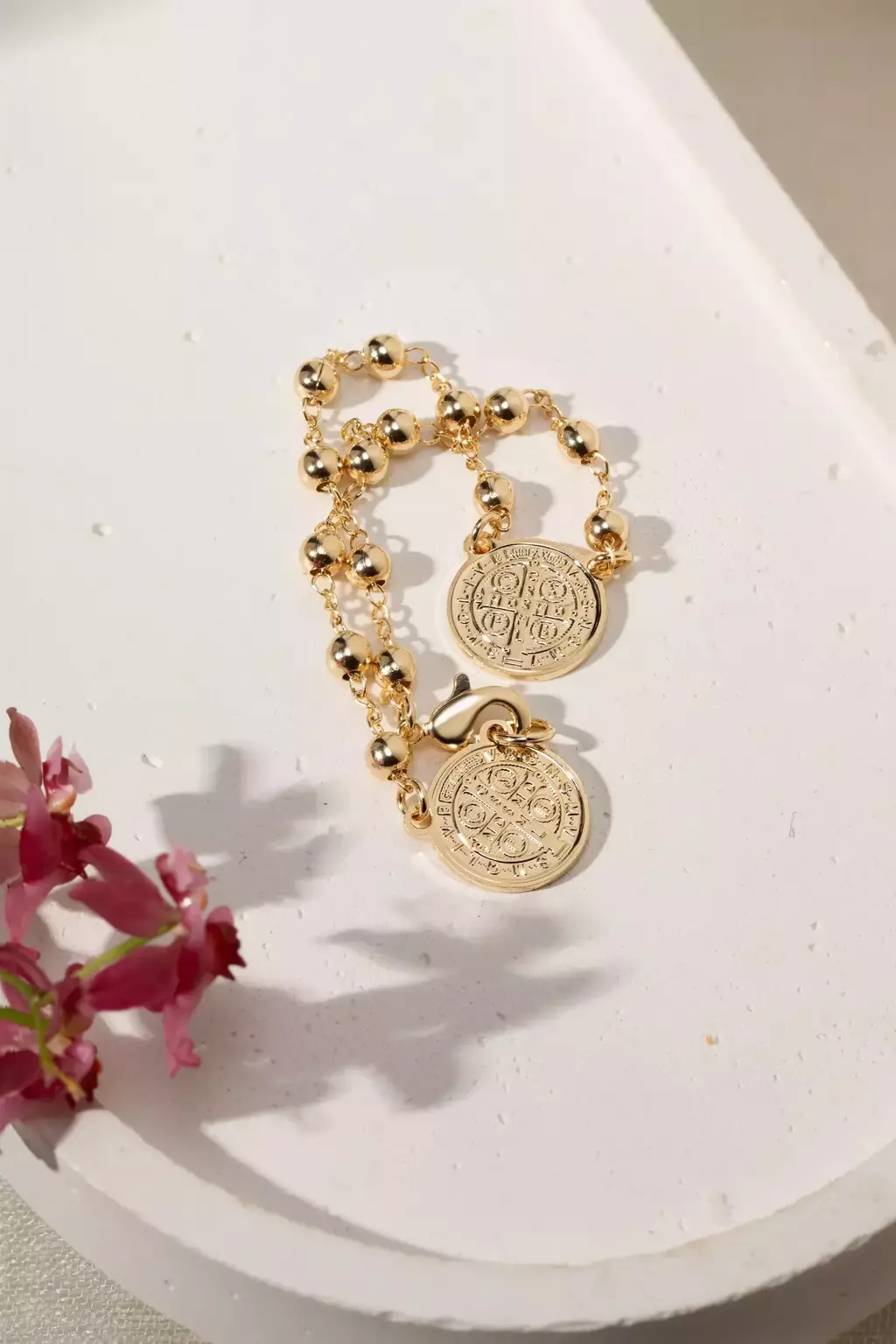 PULSEIRA FOLHEADO LISO MEDALHA DUPLA SÃO BENTO