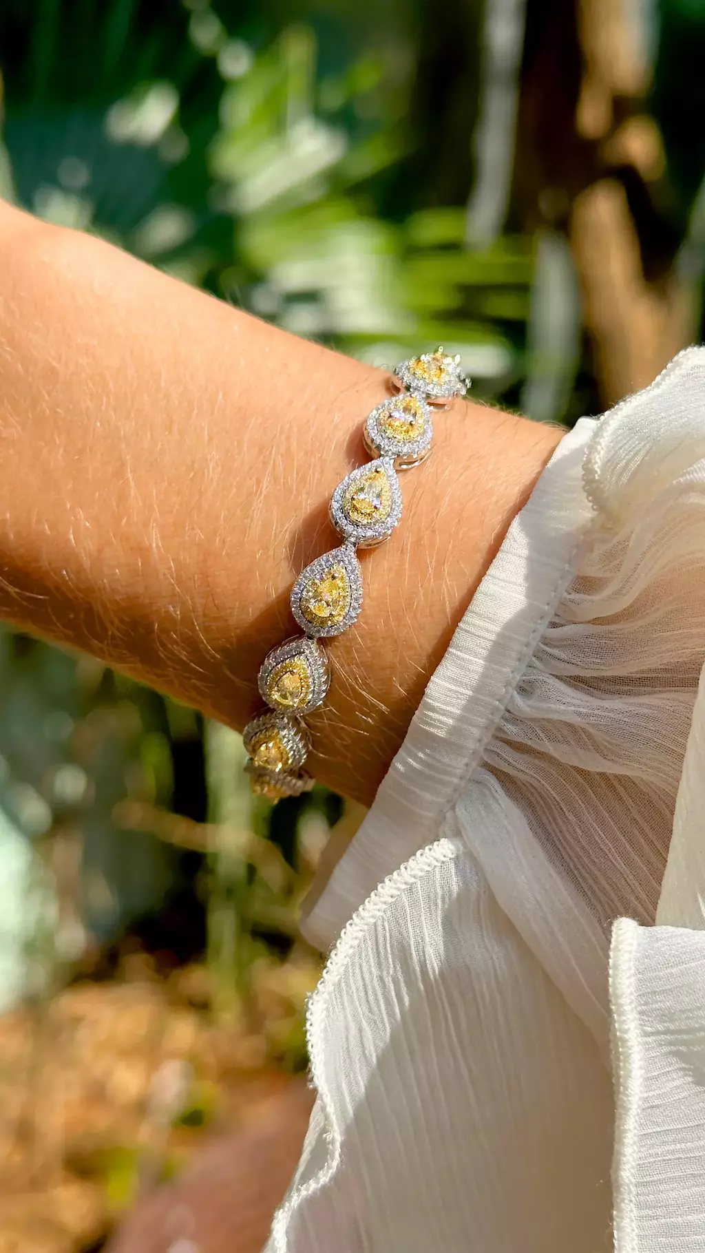 PULSEIRA ZIRCONIA FANCY YELLOW ZIRCONIA CÚBICAS BRANCA RIVIERA INTEIRA DE GOTAS